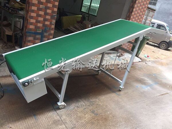 轻型输送机主要由两个端点滚筒及紧套其上的闭合输送带组成。带动输送带转动的滚筒称为驱动滚筒(传动滚筒);另一个仅在于改变输送带运动方向的滚筒称为改向滚筒。驱动滚筒由电动机通过减速器驱动,输送带依靠驱动滚筒与输送带之间的摩擦力拖动。驱动滚筒一般都装在卸料端,以增大牵引力,有利于拖动。轻型皮带输送机广泛应用于家电、电子、电器、机械、烟草、注塑、邮电、印刷、食品等各行各业的物件的组装、检测、调试、包装及运输等。